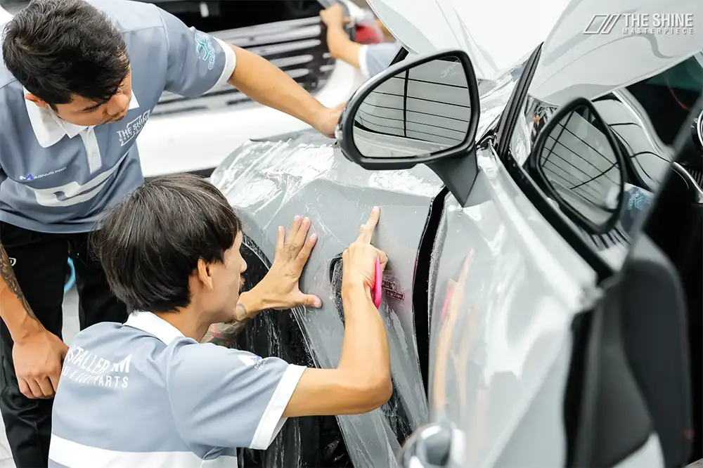 ช่างฝีมือ (Craftsmanship): ทีมงานของเราผ่านการฝึกอบรมเทคนิคขั้นสูง ทั้งการเตรียมผิว การเก็บขอบฟิล์ม และการถอดประกอบชิ้นส่วนชุดแต่ง
