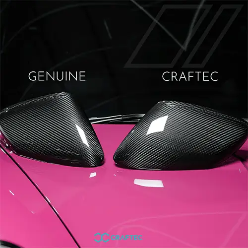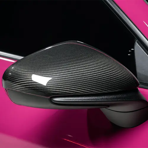 เก็บรายละเอียดความสปอร์ตให้สมบูรณ์แบบ ด้วยฝาครอบกระจก Dry Carbon แท้ น้ำหนักเบา ดีไซน์ Aero Dynamic ที่ช่วยลดแรงต้านลม พร้อมความสวยงามที่ลงตัว